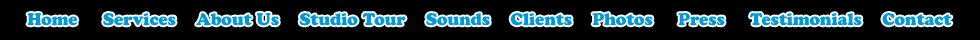 Facebook Twitter Email Home Services About Us Studio Tour Sounds Clients Photos Press Testimonials Contact